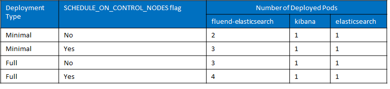 The number of deployed Pods will be dependent on the value of Deployment Type and SCHEDULE_ON_CONTROL_NODES flag as shown in the below table.